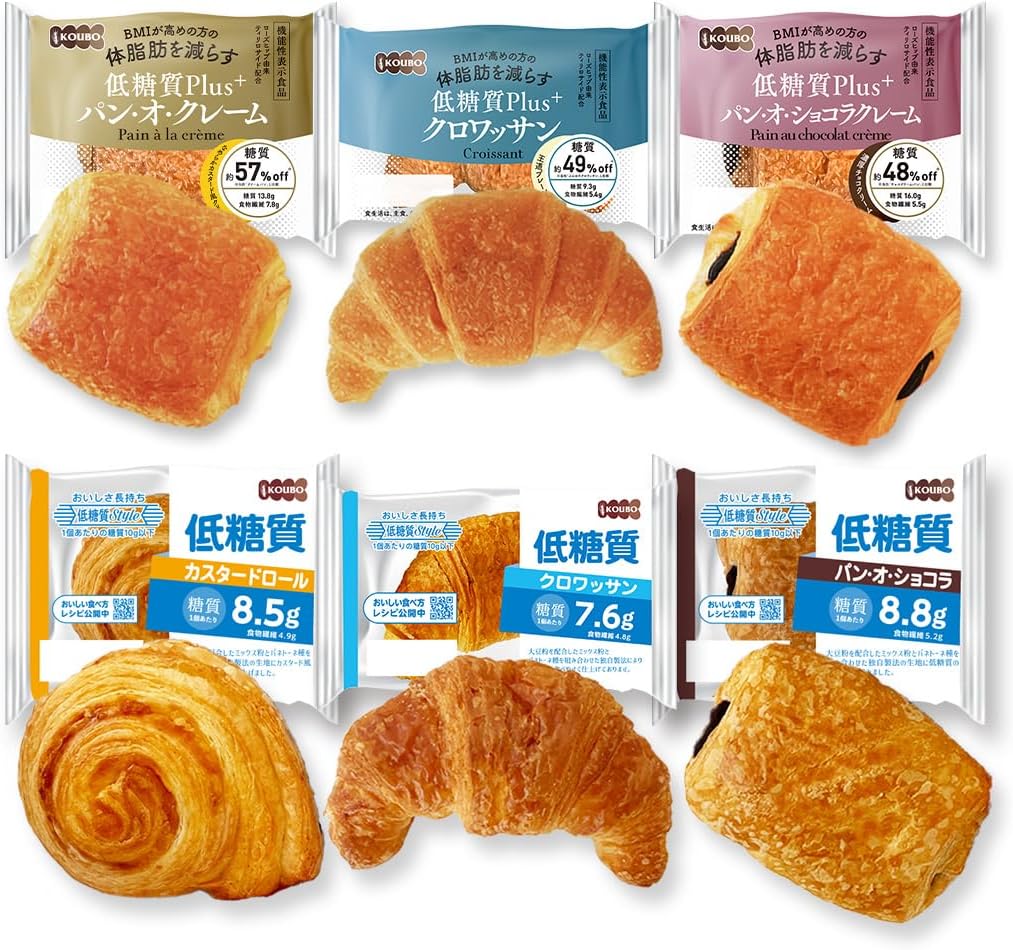 低糖質Styleクロワッサン、低糖質Styleカスタードロール、低糖質Styleパン・オ・ショコラ、低糖質Plusクロワッサン、低糖質Plusパン・オ・クレーム、低糖質Plusパン・オ・ショコラ……の6種類です。